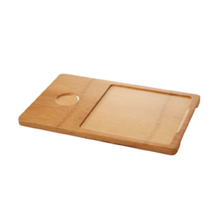 The Revol 645196 (BAPL1537) Tray - SHIPS FROM FRANCE - is a meticulously designed rectangular serving tray measuring 14-1/2 inches by 9-1/2 inches by 3/4 inches, catering to diverse culinary presentations. This versatile tray features two distinct wells: one accommodating a 7-3/4 inch plate and another specifically for the BA130, showcasing an innovative design inspired by Revol's commitment to quality. Crafted from bamboo, this tray embodies sustainability and elegance, making it an excellent choice for upscale dining establishments seeking to present their cuisine with a touch of sophistication. The tray is shipped from France, ensuring a touch of European craftsmanship and authenticity in every piece. Packed conveniently, with 6 trays per case, it provides a functional yet stylish solution for restaurants, catering services, and hospitality venues aiming to enhance their table settings. The Revol 645196 tray's dimensions and well placements are engineered to optimize presentation, offering a unique platform for showcasing culinary creations. Its durable bamboo construction not only adds an eco-friendly aspect but also ensures resilience and longevity in various dining environments. This tray is an essential addition for any establishment looking to refine their presentation with a product that combines utility and aesthetic appeal seamlessly.