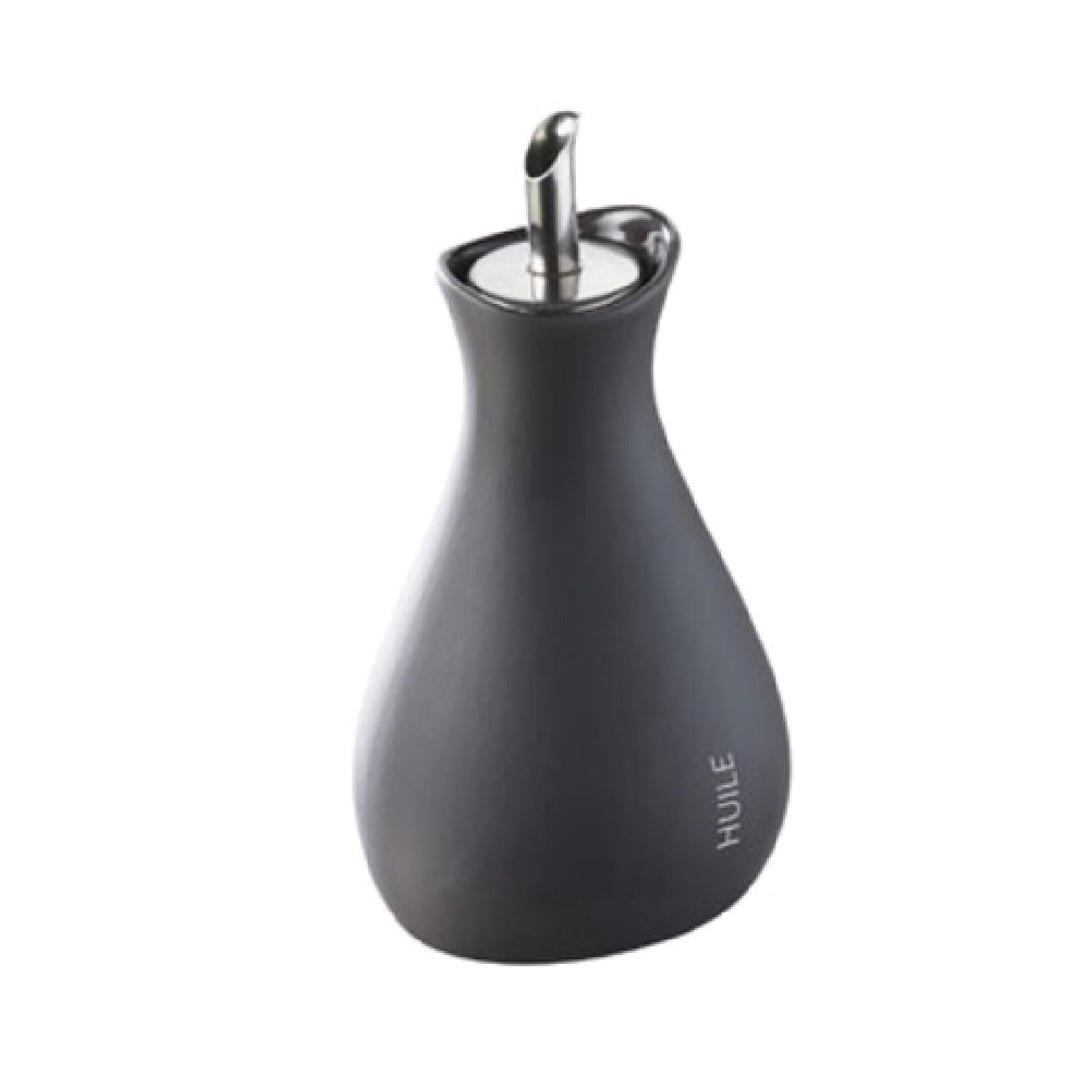 The Revol 645254 (LIE0725H) Oil Cruet is a meticulously crafted item, ideal for both professional kitchens and home culinary enthusiasts seeking elegant functionality. This porcelain cruet, with dimensions of 3-1/4 inches by 3 inches by 6-1/2 inches in height, has a capacity of 8-3/4 ounces, making it a perfect choice for storing and pouring oils with precision. The interior features a slate glaze, providing a smooth and refined surface that enhances the product's aesthetic and practical appeal. Externally, the oil cruet boasts a black matte finish, adding a touch of sophistication to any kitchen decor while subtly contrasting with the interior glaze. Notably, the "Huile" imprint is a distinctive feature, indicating its specialized use for oil storage. The Revol 645254 is part of the Likid collection and is readily available as a US-stocked item, ensuring accessibility and ease of procurement. Packed in cases of two, it is a practical option for businesses or individuals looking to maintain a stylish and uniform table setting. This oil cruet is a unique blend of French design and functionality, offering a premium choice for those valuing both form and function in culinary tools.