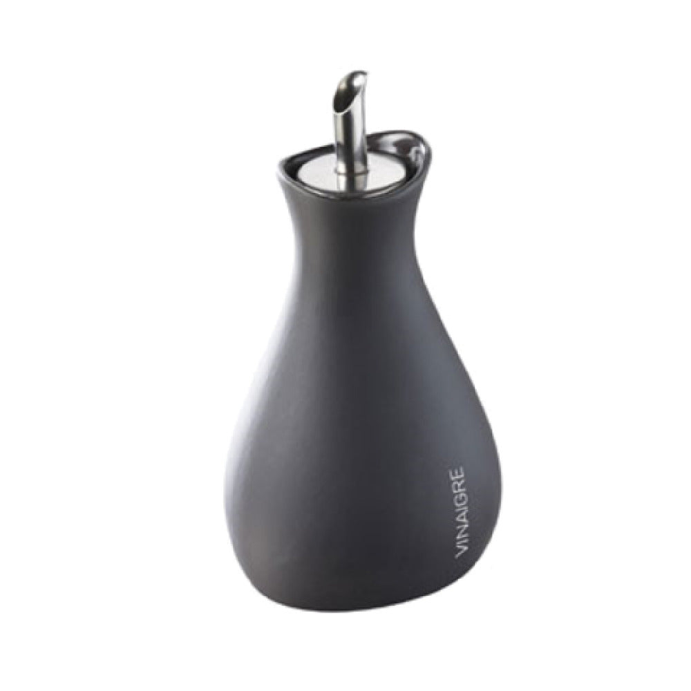 The Revol 645255 (LIE0725V) Vinegar Cruet is a meticulously crafted piece designed to enhance both the functionality and aesthetic of any kitchen or dining setting. With a volume capacity of 8-3/4 oz., this cruet is sized at 3-1/4" x 3" x 6-1/2"H, making it an ideal fit for both personal and professional environments. The "Vinaigre" imprint elegantly marks the cruet, signifying its specialized use for storing and serving vinegar. Crafted from high-quality porcelain, the interior boasts a refined slate glaze, while the exterior features a sophisticated black matte finish, adding a touch of modern elegance to its design. The Revol 645255 is part of the Likid collection and is stocked in the US, ensuring availability for timely use. It is packed with care, with 2 pieces per case, making it a practical choice for restaurants, cafes, or home use where style meets utility. This vinegar cruet provides an excellent balance of form and function, making it an asset for diverse market segments in the culinary industry. Its durable construction and sleek design offer a unique value for chefs, restaurateurs, and home cooks alike, who seek both style and practicality in their kitchenware.