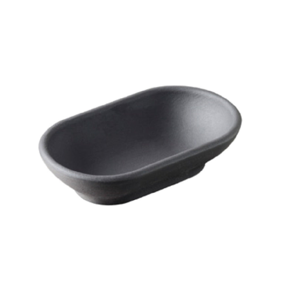 The Revol 645765 (SO1109) Macaron Serving Tray is an elegantly designed serving piece, originating from France, perfect for culinary establishments aiming to present macarons with sophistication. Measuring 3-1/4 inches in length, 2 inches in width, and 3/4 inches in height, this tray provides a compact yet functional platform for serving three macarons simultaneously. Its oblong shape enhances the visual appeal of the desserts it holds. The tray is crafted to withstand various environments, being oven, microwave, freezer, and dishwasher safe, which makes it a versatile addition to any kitchen setting. The matt slate finish adds a touch of modernity and elegance, complementing the vibrant colors of macarons it exhibits. It is sold in cases packed by six, catering to the needs of cafes, patisseries, and restaurants that require high-quality serveware in bulk. Suitable for all market segments within the hospitality industry, this tray is designed to meet the rigorous demands of professional use while maintaining an aesthetic appeal. Its French origin emphasizes an attention to detail and quality, positioning it as an essential item for establishments that prioritize both function and style in their service ware offerings.