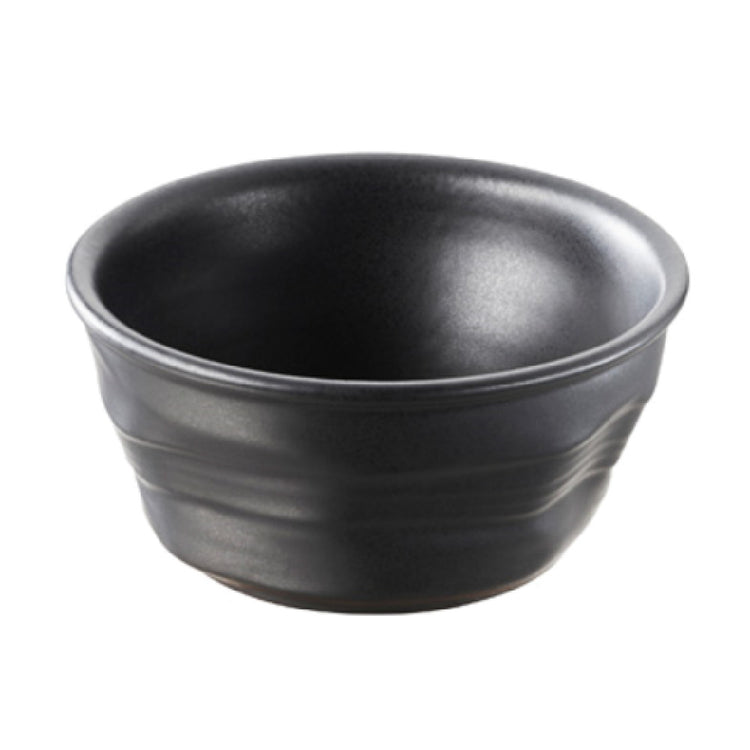 The Revol 646317 (FR1010) Ramekin is a versatile kitchen accessory that boasts a 6 oz. capacity, ideal for a variety of culinary applications. Designed with a 4" diameter and standing 1-3/4" high, this round ramekin features a unique crumpled appearance that adds a touch of contemporary style to any table setting. Constructed from durable porcelain, the ramekin is designed for practicality and is suitable for use in the oven, microwave, freezer, and dishwasher, ensuring ease of use and maintenance across multiple settings. Its satin black finish, part of the Froisses collection, delivers a sleek aesthetic that complements modern kitchen decor. The ramekin is shipped directly from France, and it is packed in cases of six, making it convenient for both professional chefs and home cooks who require quality and consistency in their culinary tools. This product's high temperature tolerance and attractive design make it a valuable addition to any kitchen, suitable for baking, serving, or simply adding a unique flair to food presentation. Its versatility and robust construction highlight its appeal to a wide range of market segments within the culinary industry.