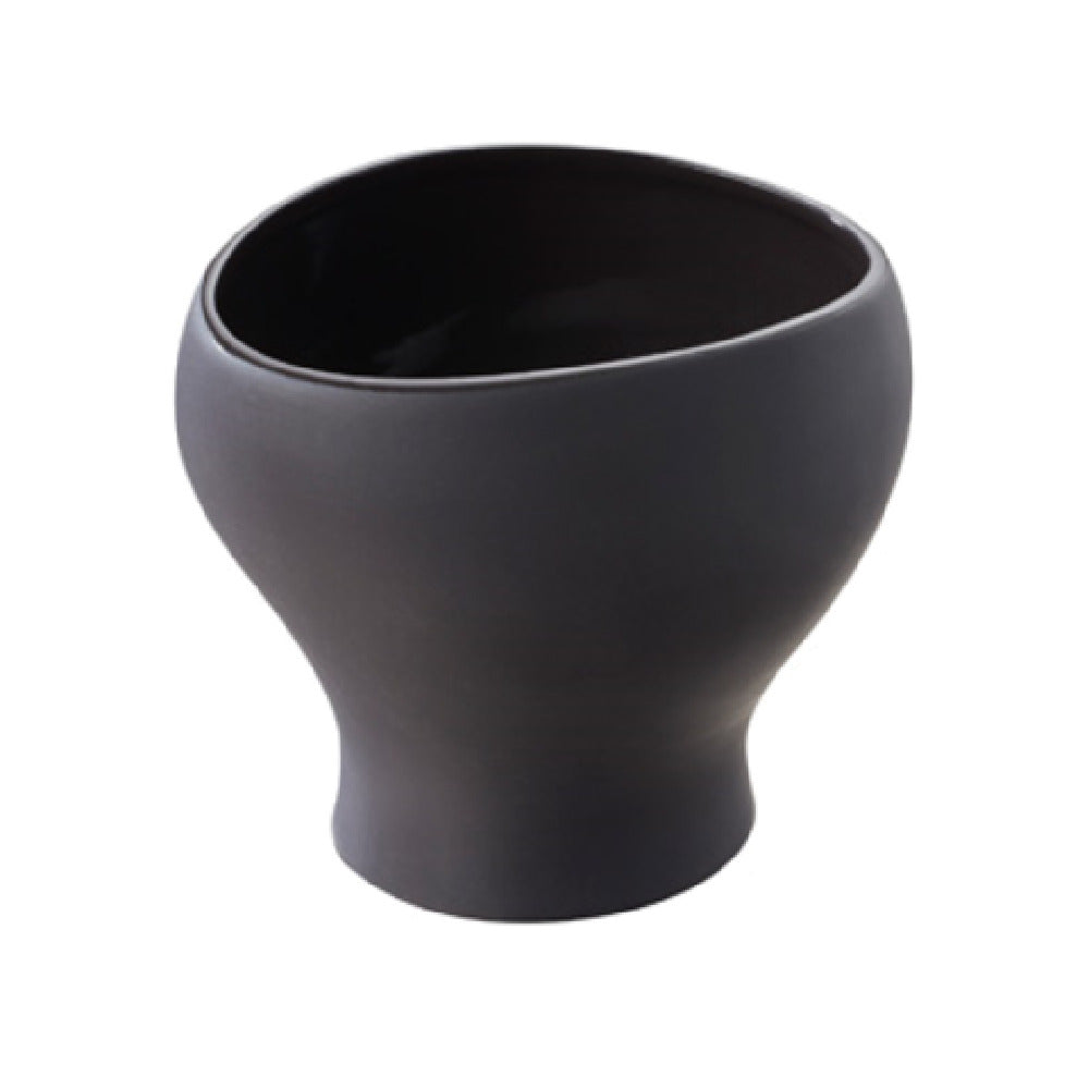 The Revol 646408 (LIE0945) Soup Bowl is a meticulously crafted serving solution, engineered to accommodate 15-3/4 oz. of soup or other liquid delicacies, making it a versatile choice for various culinary settings. The bowl measures 4-3/4" x 4-1/2" x 4-1/4" in height, presenting a well-proportioned design that complements both aesthetic and functional aspects of dining. Its round, footed structure adds stability, facilitating a refined presentation on any dining table. Constructed from premium porcelain, this bowl is adorned with a sophisticated slate glaze interior, contrasting elegantly with its matte black exterior, embodying a modern yet timeless design. The product comes in cases packed by 6, optimizing storage and transport efficiency. Shipped from France, the Revol 646408 Soup Bowl embodies a blend of European craftsmanship and contemporary design, appealing to upscale dining establishments and home gourmet enthusiasts alike. This bowl is especially valuable in the hospitality industry, where presentation and quality are paramount, ensuring that each dish served is accompanied by a vessel that complements its culinary excellence.