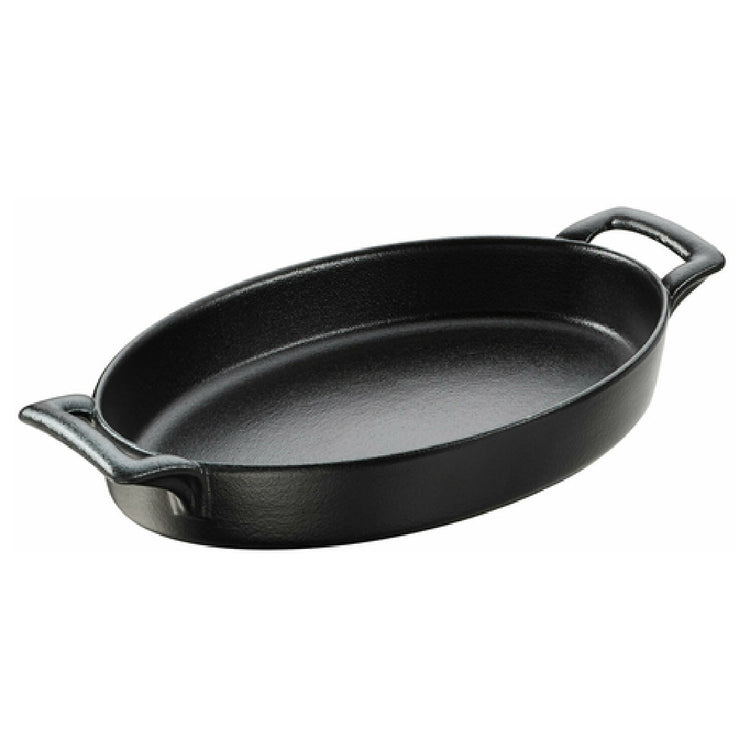 The Revol 647582 (BC0624N) Dish is a high-quality culinary accessory, featuring a substantial capacity of 24-3/4 oz., making it suitable for a variety of cooking and serving applications. This dish measures 9-1/2" x 6" x 1-1/2" in height and is designed in an oval shape with convenient handles, enhancing its functionality and ease of use. Fabricated from durable black cast iron, it is part of the Belle Cuisine collection, renowned for its robust and stylish kitchenware. This dish is versatile, being oven, microwave, freezer, and dishwasher safe, which allows for seamless integration into diverse culinary environments, from home kitchens to professional settings. The dish is shipped from France and is offered in a packaging configuration of 4 units per case, catering to both individual consumers and bulk purchasing for businesses. Its design and material composition make it an attractive option for those seeking reliable performance and aesthetic appeal in their cookware. The Revol 647582 (BC0624N) Dish stands out in the market for its blend of practicality and elegance, providing a unique value proposition across different market segments within the culinary industry.