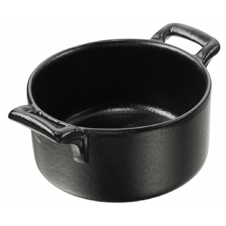 The Revol 647585 (BC2107N) Ramekin (SHIPS FROM FRANCE) 2-3/4 Oz is a refined addition to culinary settings, featuring a sleek, round design with a diameter of 2-3/4 inches and a height of 1-1/2 inches. This ramekin is crafted from high-quality glazed porcelain, ensuring a durable and elegant presentation. Its sophisticated cast iron style black finish aligns with the Belle Cuisine aesthetic, making it an ideal choice for both professional kitchens and home dining experiences. This versatile ramekin is engineered for convenience and resilience, being oven, microwave, freezer, and dishwasher safe, catering to diverse preparation and serving needs. Available in cases packed by six each, it provides an efficient solution for bulk purchases. The Revol 647585 ramekin’s compatibility with various kitchen technologies and its robust construction underscore its value in markets ranging from high-end restaurants to casual dining establishments. Its compact size with a capacity of 2-3/4 ounces is perfect for serving small portions, enhancing the presentation of both savory and sweet dishes. Shipping from France, the Revol 647585 ramekin exemplifies French culinary craftsmanship, offering a blend of utility and aesthetic appeal to elevate dining experiences across different segments of the food service industry.