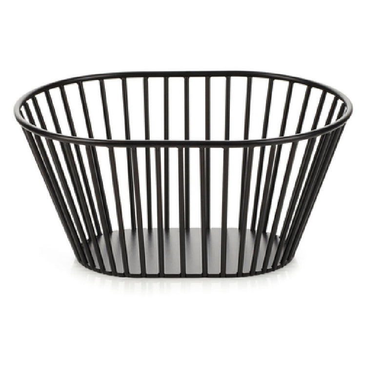 The Revol 651884 (MCO1020) Basket, measuring 7-3/4"L x 5-3/4"W x 4"H, is a uniquely designed oval container crafted to serve various functions across different industry segments. Composed of deep wire metal and finished in a sleek black, this basket integrates both durability and style, making it an ideal choice for retail displays and food service environments. Its notable dimensions and oval shape allow for versatile placement and storage, offering a practical solution for organizing small items or presenting products with an elegant touch. The design is inspired by Revol, a brand known for its innovative and stylish creations, and it is readily available as a US-stocked item, packed individually to ensure quality and convenience. The Revol 651884 basket represents a blend of aesthetics and functionality, ideal for businesses seeking a balance between utility and visual appeal in their display or storage solutions.