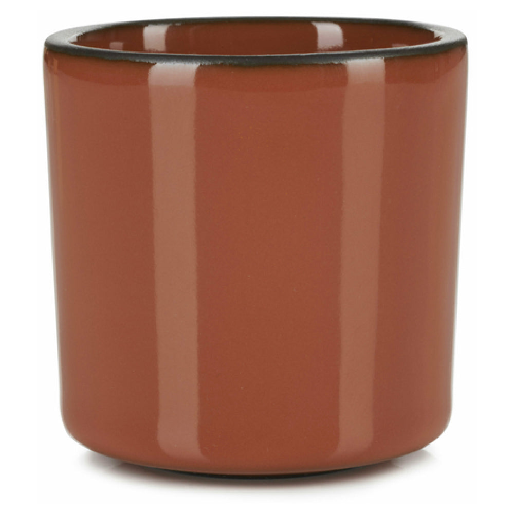 The Revol 652690 (CO1108N-254) Cup is a versatile and durable solution for various culinary environments, crafted from high-quality porcelain and featuring a stylish cinnamon hue. This round cup has a capacity of 2-3/4 ounces, with dimensions of 2-1/4 inches in diameter and 2-1/4 inches in height, making it suitable for serving small beverages or culinary creations. Designed with practicality in mind, the cup is stackable, facilitating efficient storage and space-saving in busy kitchens. Its compatibility with ovens, microwaves, freezers, and dishwashers enhances its functionality, allowing it to withstand a wide range of temperatures and cleaning processes without compromising on quality or durability. As part of the Caractere collection, this cup embodies a blend of aesthetic appeal and practical design, making it a valuable addition to both professional kitchens and home settings. The product is US-stocked, ensuring availability and timely delivery, and is conveniently packed in cases of four. Its robust construction and elegant design cater to diverse market segments, from restaurant and cafe owners seeking reliable and stylish serveware to home chefs looking for versatile and durable kitchenware. The Revol 652690 (CO1108N-254) Cup is a testament to Revol's commitment to excellence and innovation in porcelain craftsmanship.