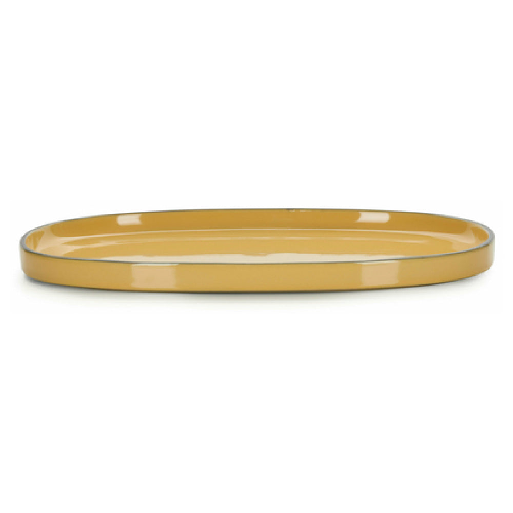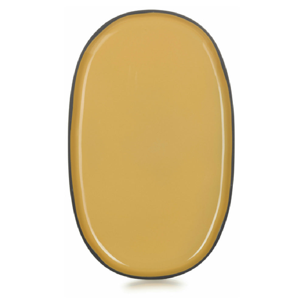 The Revol 652764 (CO1335N-257) Service Plate 14" X 8-1/2" X 1"H Oval Oven exemplifies versatility and elegance in professional kitchenware. This service plate is crafted from high-quality porcelain, ensuring both durability and a refined aesthetic appeal, making it a desirable choice for upscale dining establishments and culinary professionals. Measuring 14 inches in length, 8-1/2 inches in width, and 1 inch in height, its oval shape offers a unique presentation platform that enhances the visual appeal of any dish. Notably, the plate is designed to withstand rigorous conditions, being oven, microwave, freezer, and dishwasher safe. This flexibility allows chefs to seamlessly transition from preparation to presentation without changing dishes, optimizing workflow and efficiency in busy kitchens. The turmeric hue of the Caractere collection adds a vibrant touch, complementing a variety of culinary presentations. This product is a US stocked item, ensuring quick delivery and availability. Each case contains four plates, catering to the needs of high-volume service operations. With its blend of functionality, style, and resilience, the Revol 652764 Service Plate is an asset to both modern and traditional culinary settings, accommodating diverse market segments from fine dining to casual eateries.