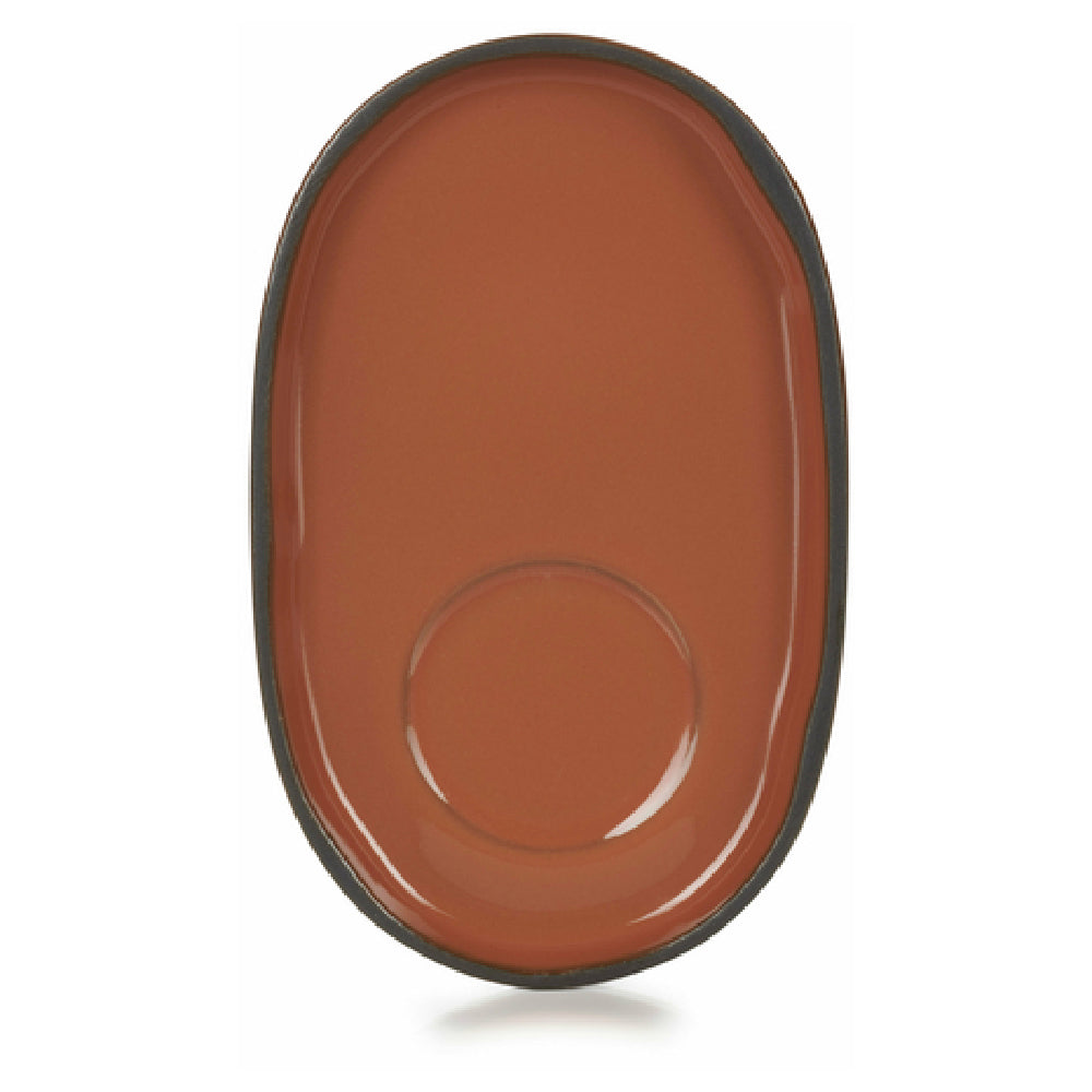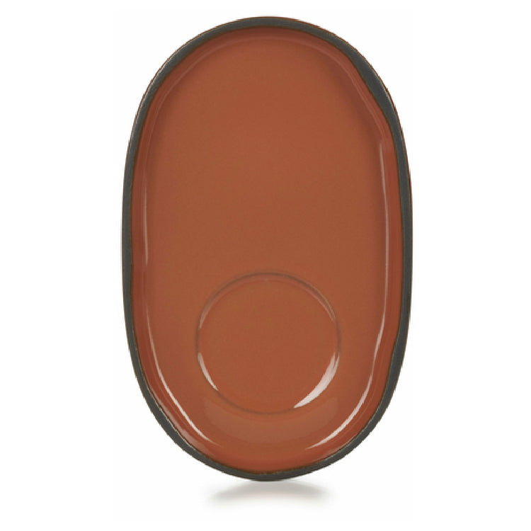The Revol 652768 (CO1414N-254) Saucer 5-1/4" x 3-1/4" x 1/2"H Oval is a meticulously crafted piece of porcelain tableware that caters to a variety of industry needs, from hospitality to home dining. Designed to fit seamlessly with the CO1108N, this saucer's oval dimensions offer a compact yet elegant solution for serving requirements. Measuring 5-1/4 inches by 3-1/4 inches and standing at 1/2 inch high, it presents a sophisticated blend of style and practicality, complemented by its distinctive cinnamon hue. The saucer is constructed from high-quality porcelain, ensuring durability and a refined aesthetic that elevates any culinary presentation. Its functionality is unmatched, as it is oven, microwave, freezer, and dishwasher safe, providing versatile usability across different settings and temperatures. This makes it an ideal choice for chefs and home cooks who value both form and function in their kitchenware. The product is part of the Caractere line, suggesting a focus on unique design and high performance. Packed in cases of four, the Revol 652768 saucer meets the demands of high-volume service environments while also offering a touch of elegance to smaller, intimate settings.