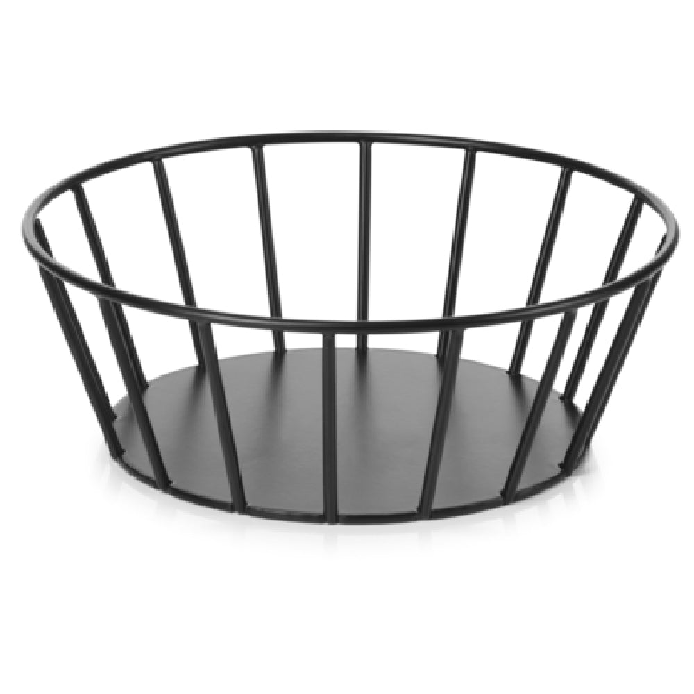 The Revol 654321 (MCO8515) Wire Basket is a meticulously designed round basket with dimensions of 6 inches in diameter and a height of 2-1/4 inches, offering a shallow profile that is both functional and versatile. Crafted from high-quality metal, this basket is finished in an elegant black, enhancing its aesthetic appeal and ensuring durability. Inspired by Revol, a renowned name in the industry, the wire basket is packed by 4 each per case, making it a practical choice for hospitality sectors, catering services, and retail display environments. Its size and structure are ideal for organizing and presenting a variety of items, from culinary ingredients in a professional kitchen to decorative pieces in a retail space. The simple yet sophisticated design allows it to seamlessly integrate into various settings, providing a reliable storage solution without compromising on style. The Revol 654321 Wire Basket stands out for its combination of practicality and elegance, making it an essential accessory for businesses seeking both functionality and design excellence.