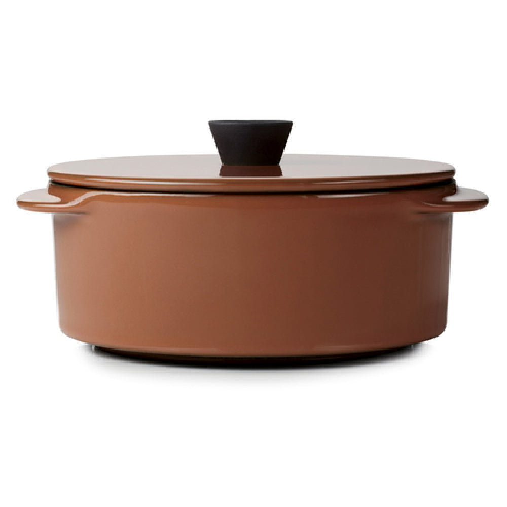 The Revol 654577 (6A+CO2412N-254) Cocotte 8.75 Oz. 4-3/4"L x 2-1/2"H is a meticulously crafted piece of kitchenware that exemplifies premium quality and versatile functionality. This cocotte, with a capacity of 8.75 ounces, is engineered from high-quality porcelain, ensuring durability and a sophisticated finish. Its dimensions of 4-3/4 inches in length and 2-1/2 inches in height make it an ideal choice for both individual servings and small dish presentations. Designed with practicality in mind, it comes equipped with a lid and handles, providing ease of use whether in a home kitchen or a professional culinary setting. This cocotte is oven, microwave, freezer, and dishwasher safe, offering seamless integration into various cooking and cleaning processes. The cinnamon color enhances its aesthetic appeal, while its stocking in the US under the Caractere collection guarantees quick availability. Sold in cases of six, this product caters to the needs of restaurants, catering services, and home cooks who demand reliability and style in their cookware. The Revol 654577 Cocotte stands out as an indispensable tool for those seeking to combine functionality with elegance in their culinary endeavors.