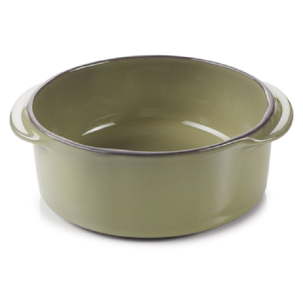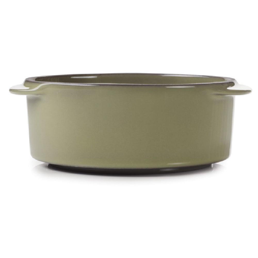 The Revol 654822 (4A+CO2412CON-255) Cocotte 8.75 Oz. 4-3/4" Dia. X 2"H is a versatile and durable kitchen essential, catering to diverse needs across the culinary industry. With a capacity of 8.75 ounces, this cocotte measures 4-3/4 inches in diameter and stands 2 inches high, making it suitable for individual servings or small side dishes. Crafted from high-quality porcelain, it ensures even heat distribution, enhancing the cooking and dining experience. The sleek, round design includes handles for easy maneuverability, and its cardamom color adds a touch of elegance to any table setting. This cocotte's compatibility with oven, microwave, freezer, and dishwasher makes it an incredibly flexible addition to any kitchen, whether for professional chefs or home cooks. As part of the Caractere collection, it is a US stocked item, ensuring availability and quick dispatch. Packed by four per case, the Revol Cocotte is designed without a lid, focusing on open presentation and convenient access to its contents. This piece combines functionality with style, meeting the needs of various market segments, from upscale restaurants to home dining enthusiasts, by providing reliable performance and an aesthetically pleasing serving solution.