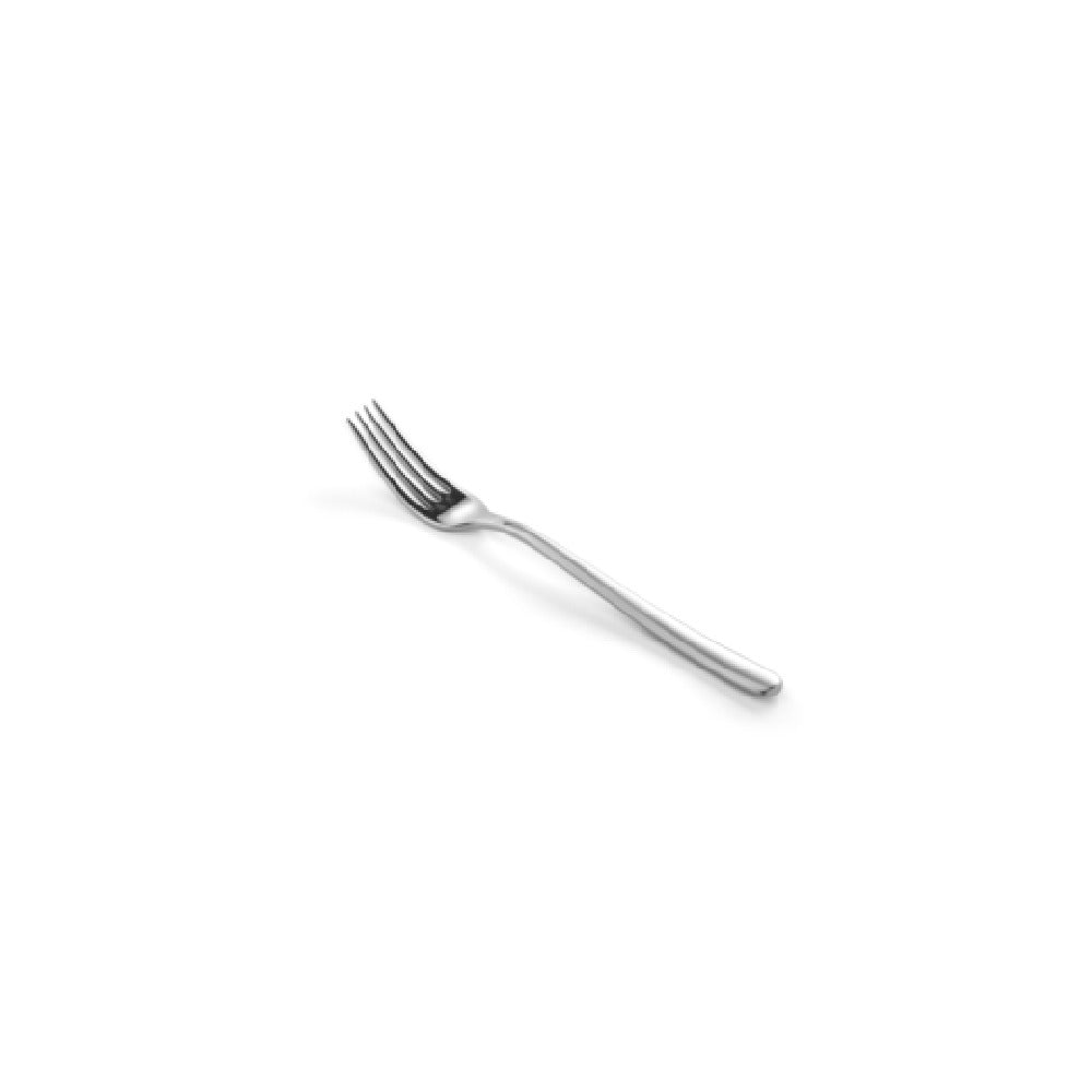 Revol 656610 Dessert Fork 7-1/4" 18/10 Stainless Steel is a meticulously crafted utensil, designed to enhance the dining experience across various market segments within the culinary industry. This dessert fork is constructed from 18/10 stainless steel, which indicates its superior strength and resistance to corrosion, embodying durability and longevity in frequent use. The 7-1/4 inch size is perfectly balanced for comfort and precision when indulging in desserts, making it an ideal choice for both professional settings and home dining. Its satin finish not only adds an elegant aesthetic but also provides a smooth texture, enhancing the dining presentation. Originating from the Courchevel line, this dessert fork represents a blend of functionality and design, suitable for upscale restaurants, hotels, and catering services looking to impress their clientele with high-quality tableware. The Revol 656610 Dessert Fork stands out in the market for its refined craftsmanship and attention to detail, offering a sophisticated touch to any dessert course. Its adaptability and stylish design make it a valuable addition to any cutlery collection where quality and aesthetic appeal are paramount.