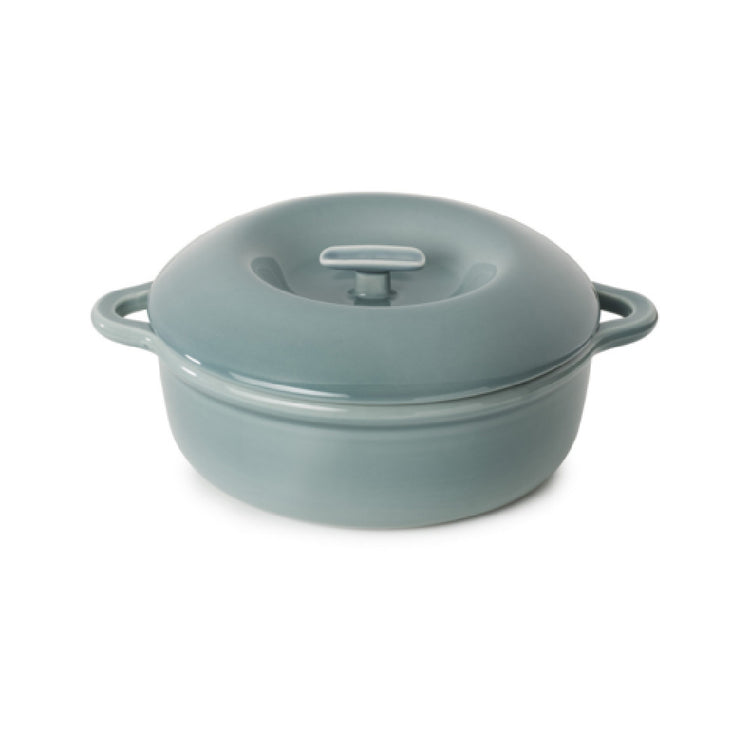 The Revol 660142 (B1+BM1229COCV-286-2593) Cocotte is a highly durable and versatile kitchen essential with a generous volume of 135 oz., perfectly suited for both professional and home cooking environments. Crafted from premium porcelain, this round cocotte measures 11-1/2" in diameter and stands 3-3/4" high, offering ample capacity for a wide range of culinary creations. Its induction-ready design makes it compatible with modern cooking technology, while the accompanying porcelain lid ensures optimal heat retention and moisture control. The Cocotte's adaptability extends to being oven, microwave, freezer, and dishwasher safe, ensuring convenience across various culinary processes. Finished in an elegant cloud gray, this piece is a distinguished part of the Bombance collection and is readily available as a US-stocked item. Whether serving a large family or catering to guests, the Revol 660142 Cocotte meets diverse culinary needs with its robust construction and versatile functionality, making it a valuable addition to any kitchen setting. Its thoughtful engineering not only enhances cooking efficiency but also ensures longevity and reliability, making it a preferred choice for chefs and cooking enthusiasts who appreciate quality and practicality in their kitchen tools.