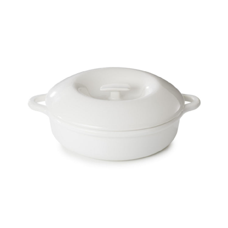 The Revol 660143 (B1+BM1231COCV-283-2593) Cocotte is a versatile cooking vessel with a substantial capacity of 118 oz., making it suitable for various culinary applications. With dimensions of 12-1/4" in diameter and 3-1/4" in height, this round cocotte offers generous space for preparing and serving a wide range of dishes. Crafted from alabaster white porcelain, it combines aesthetic appeal with durability and functionality. The inclusion of a porcelain lid enhances its utility, providing excellent heat retention and moisture preservation. This cocotte is induction ready, allowing for energy-efficient cooking across a variety of heat sources, including oven, microwave, freezer, and dishwasher, underscoring its convenience and versatility in the kitchen. Part of the Bombance collection, the Revol 660143 cocotte is a US-stocked item, ensuring reliable availability for domestic markets. Its design and features cater to the needs of professional chefs and home cooks alike, offering a high-quality, multifunctional solution for cooking and serving. The product is packed individually, ensuring each piece arrives in pristine condition, ready to elevate the culinary experience with its blend of style and practicality.