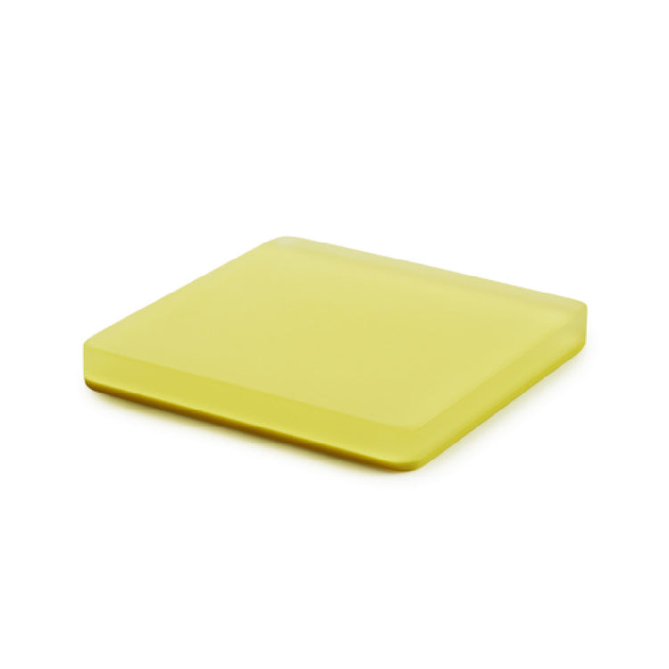 The Revol 660464 Pastry Support (SHIPS FROM FRANCE) - Square is a meticulously crafted piece designed to enhance the presentation and support of pastry creations in professional culinary settings. Measuring 3.15 inches by 3.15 inches, this square pastry support is fabricated from Nacryl® resin, a material known for its non-porous nature, ensuring it is food safe and resistant to staining or odors. Its vibrant lemon color adds a subtle yet striking aesthetic appeal, ideal for showcasing exquisite desserts. The product is part of the Mealplak collection, which emphasizes innovative design and functionality. As it is dishwasher safe, the Revol 660464 offers ease of cleaning after each use, catering to the fast-paced needs of professional kitchens. It is proudly made in France, a country renowned for its culinary excellence, and is shipped from there directly, ensuring authenticity and quality. Packaged in cases of eight, this pastry support is a practical and stylish choice for pastry chefs and culinary professionals looking to elevate their presentation standards. The Revol 660464 Pastry Support is a testament to Revol USA's commitment to quality and design, making it a valuable addition to any upscale dining establishment or patisserie.