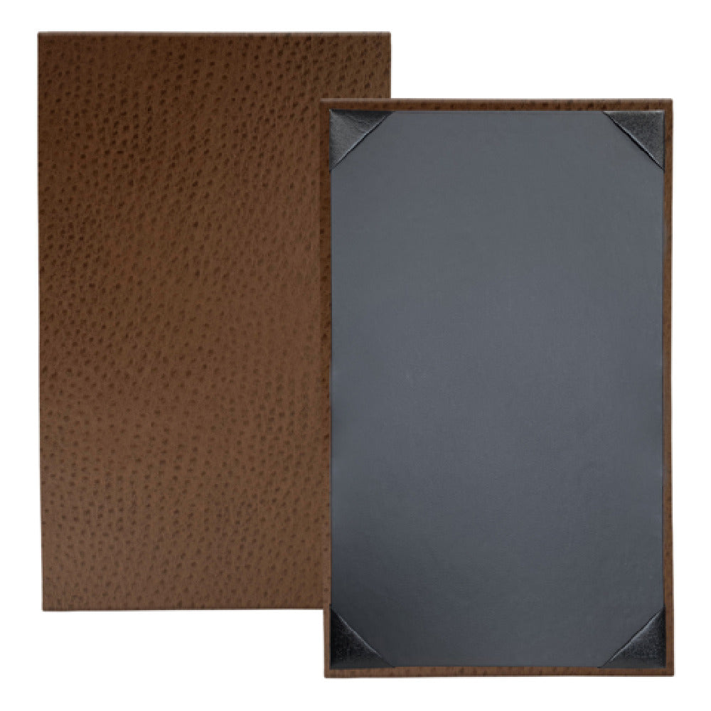Risch, CH-1V 8.5X14, Chesterfield padded ostrich texture faux-leather Menu Cover (specify color), 8-1/2" x 14", single, 1 view, black card with black album style corner tabs to hold menu insert, Made in USA (minimum order 25 each) (Packed By: 25 Each Per Case)