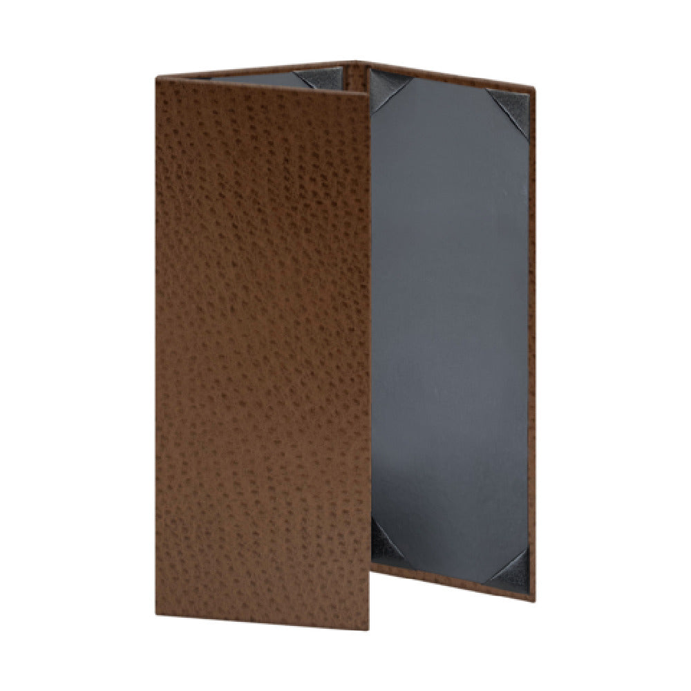 Risch, CH-3V 4.25X11, Chesterfield padded ostrich texture faux-leather Menu Cover (specify color), 4-1/4" x 11", fold-out, 3 view, black cards with black album style corner tabs to hold menu inserts, Made in USA (minimum order 25 each) (Packed By: 25 Each Per Case)