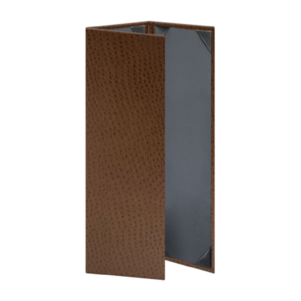 Risch, CH-3V 4.25X14, Chesterfield padded ostrich texture faux-leather Menu Cover (specify color), 4-1/4" x 14", fold-out, 3 view, black cards with black album style corner tabs to hold menu inserts, Made in USA (minimum order 25 each) (Packed By: 25 Each Per Case)