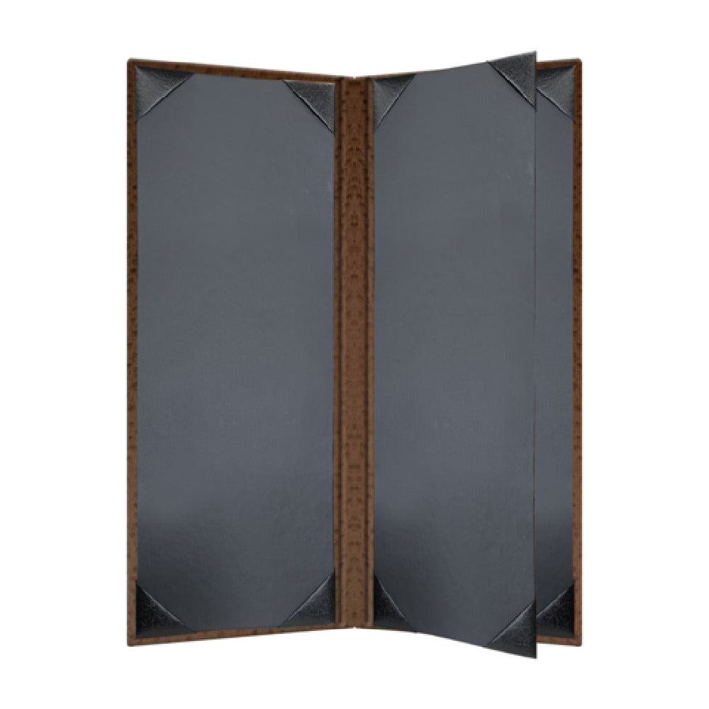 Risch, CH-4V 4.25X11, Chesterfield padded ostrich texture faux-leather Menu Cover (specify color), 4-1/4" x 11", booklet, 4 view, black cards with black album style corner tabs to hold menu inserts, Made in USA (minimum order 25 each) (Packed By: 25 Each Per Case)