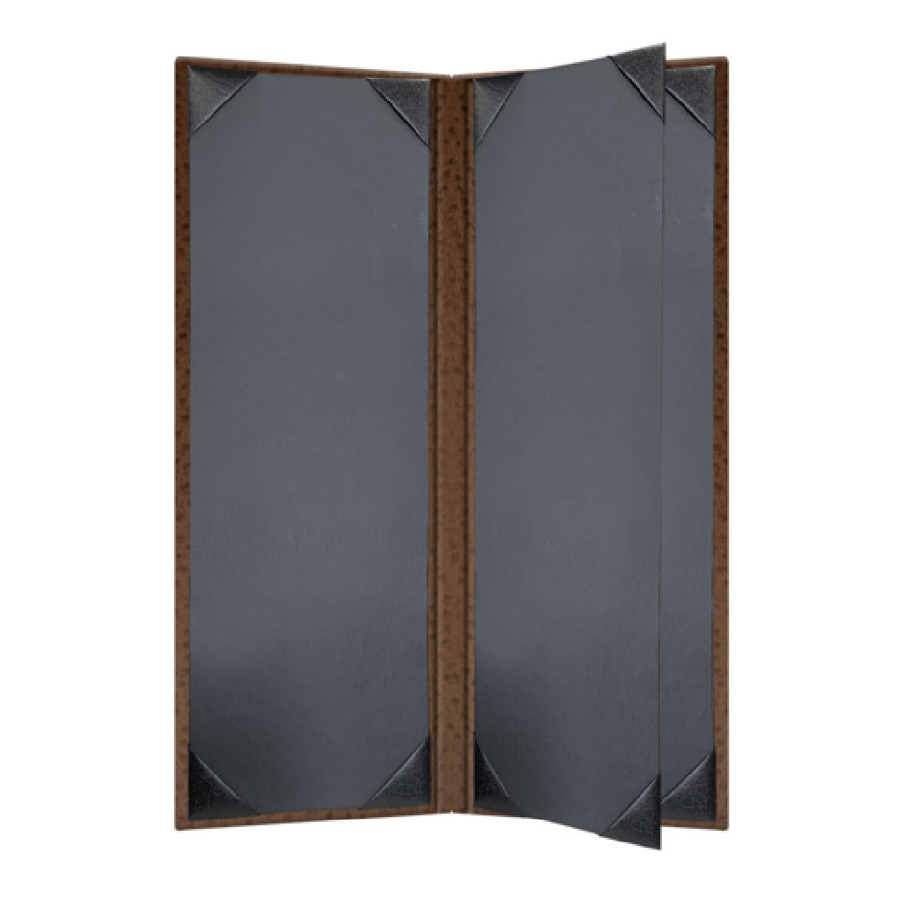 Risch, CH-4V 4.25X14, Chesterfield padded ostrich texture faux-leather Menu Cover (specify color), 4-1/4" x 14", booklet, 4 view, black cards with black album style corner tabs to hold menu inserts, Made in USA (minimum order 25 each) (Packed By: 25 Each Per Case)