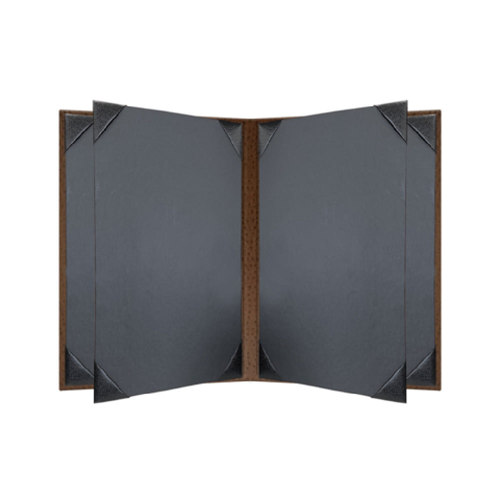 Risch, CH-6V 8.5X11, Chesterfield padded ostrich texture faux-leather Menu Cover (specify color), 8-1/2" x 11", booklet, 6 view, black cards with black album style corner tabs to hold menu inserts, Made in USA (minimum order 25 each) (Packed By: 25 Each Per Case)