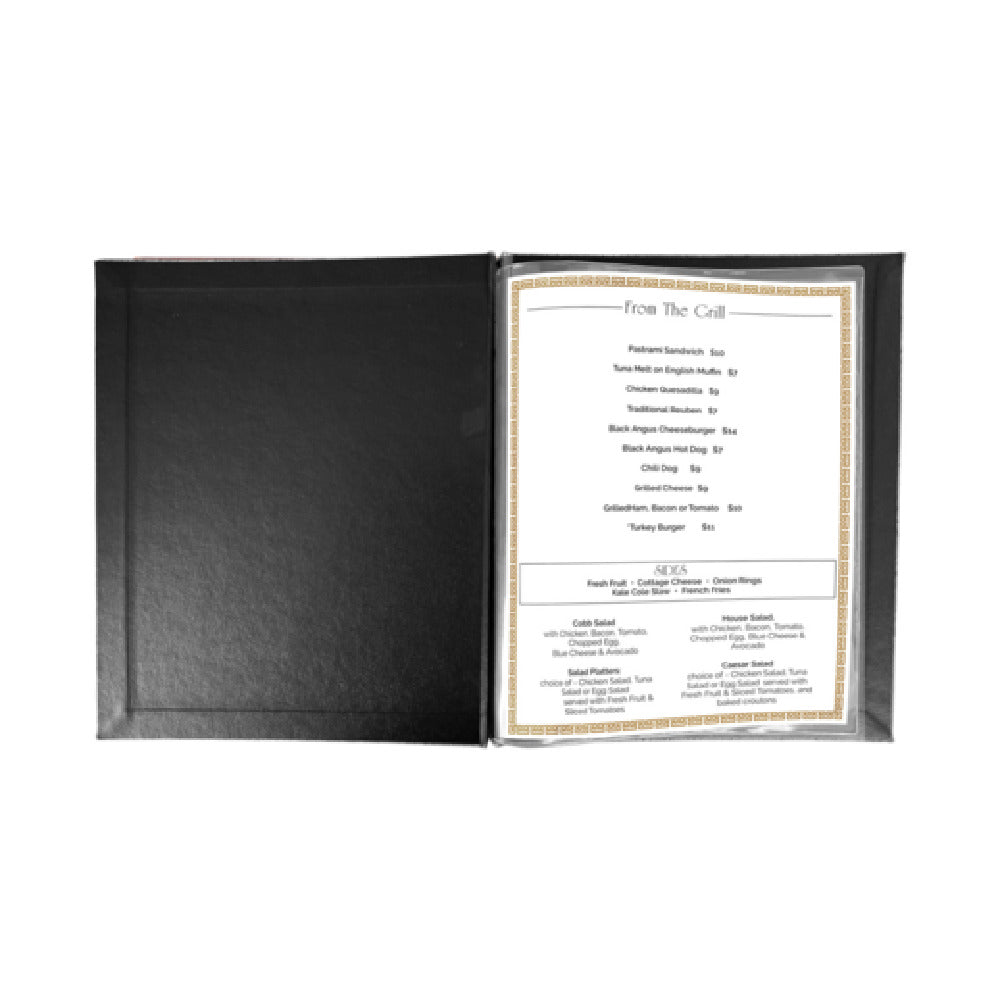 Risch, CMBFF-MET 8.5X11, Brushed Metallic faux-leather Chicago Menu Board (specify color), 8-1/2" x 11", hardback binder with black screwposts and black interior, holds up to 12 clear vinyl page protectors (sold separately), Made in USA (minimum order 25 each) (Packed By: 25 Each Per Case)