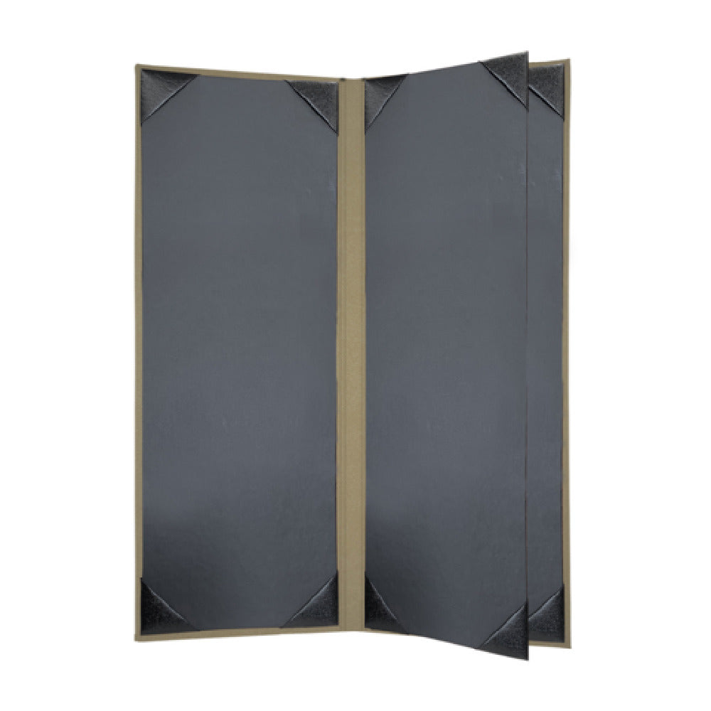 Risch, EVERGREEN-4V 4.25X11, Evergreen hardback bio-friendly faux-leather Menu Cover (specify color), 4-1/4" x 11", booklet, 4 view, black cards with black album style corner tabs to hold menu inserts, Made in USA (minimum order 25 each) (Packed By: 25 Each Per Case)