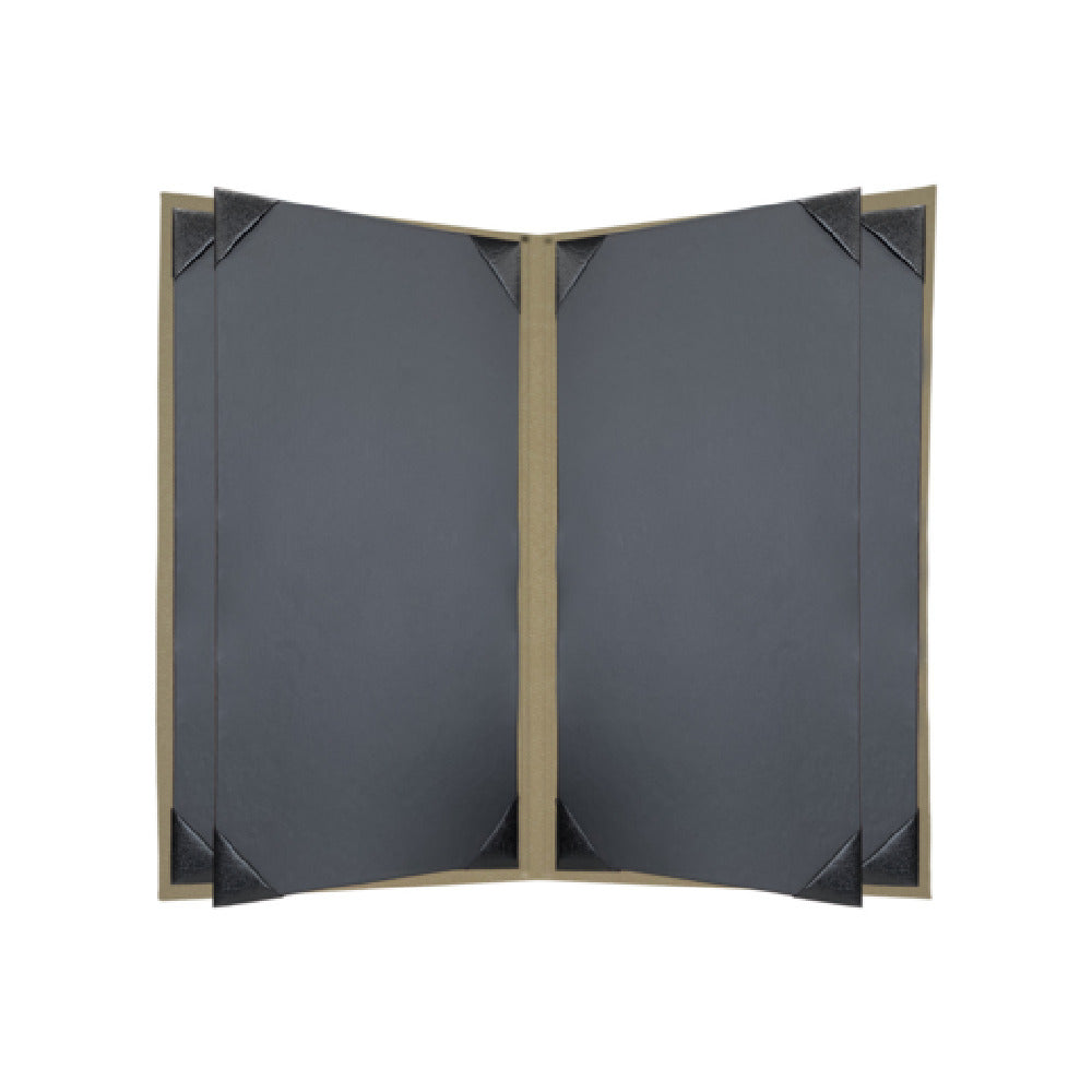 Risch, EVERGREEN-6V 8.5X14, Evergreen hardback bio-friendly faux-leather Menu Cover (specify color), 8-1/2' x 14', booklet, 6 view, black cards with black album style corner tabs to hold menu inserts, Made in USA (minimum order 25 each) (Packed By: 25 Each Per Case)