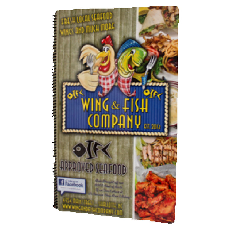Risch, H2O-6V 4.25X14, Menu, 4-1/4" x 14", booklet, 6 view, black spiral bound, full color custom graphics print, waterproof, rigid vinyl, Made in USA (8-10 ara lead time) (non-returnable)