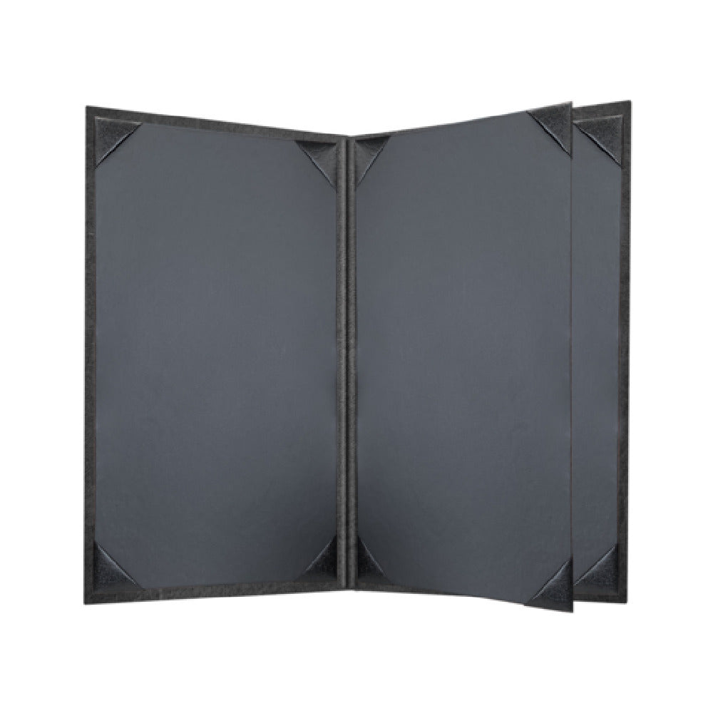 Risch, HAR-4V 8.5X14, Harley padded antibacterial/antimicrobial faux-leather Menu Cover (specify color), 8-1/2" x 14", booklet, 4 view, black cards with black album style corner tabs to hold menu inserts, Made in USA (minimum order 25 each) (Packed By: 25 Each Per Case)