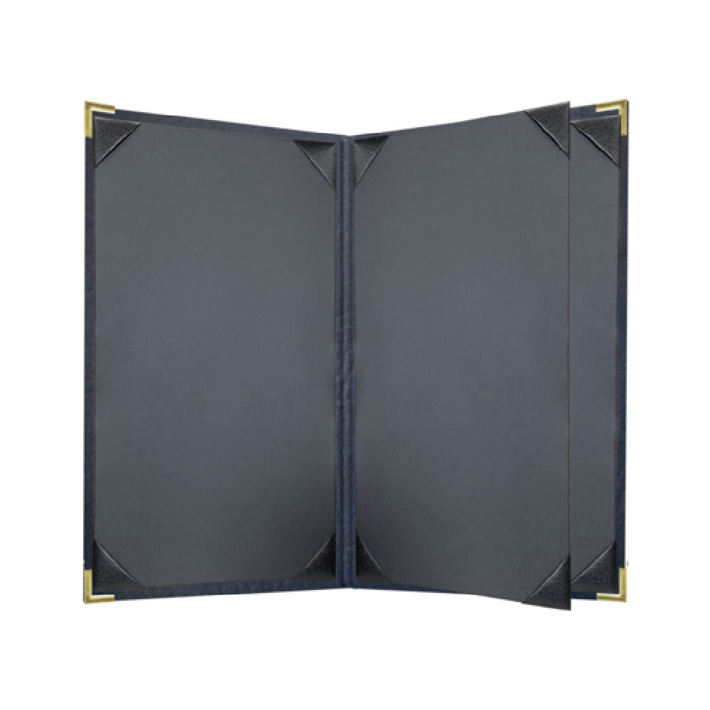 Risch, HARST-4V 8.5X14, Harley Deluxe padded antibacterial/antimicrobial faux-leather Menu Cover (specify color), 8-1/2" x 14", booklet, 4 view, stitched edges with metal corners (specify color), black cards with black album style corner tabs to hold menu inserts, Made in USA (minimum order 25 each) (Packed By: 25 Each Per Case)