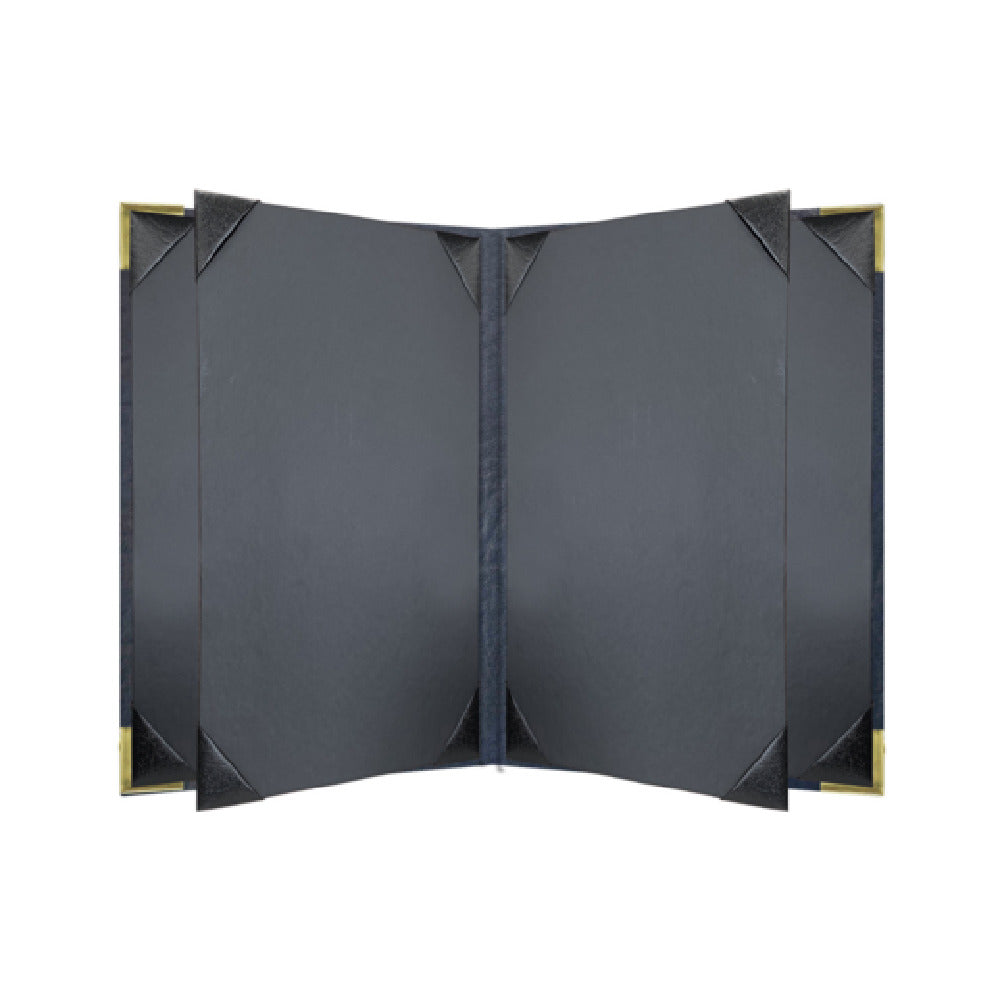 Risch, HARST-6V 5.5X8.5, Harley Deluxe padded antibacterial/antimicrobial faux-leather Menu Cover (specify color), 5-1/2" x 8-1/2", booklet, 6 view, stitched edges with metal corners (specify color), black cards with black album style corner tabs to hold menu inserts, Made in USA (minimum order 25 each) (Packed By: 25 Each Per Case)