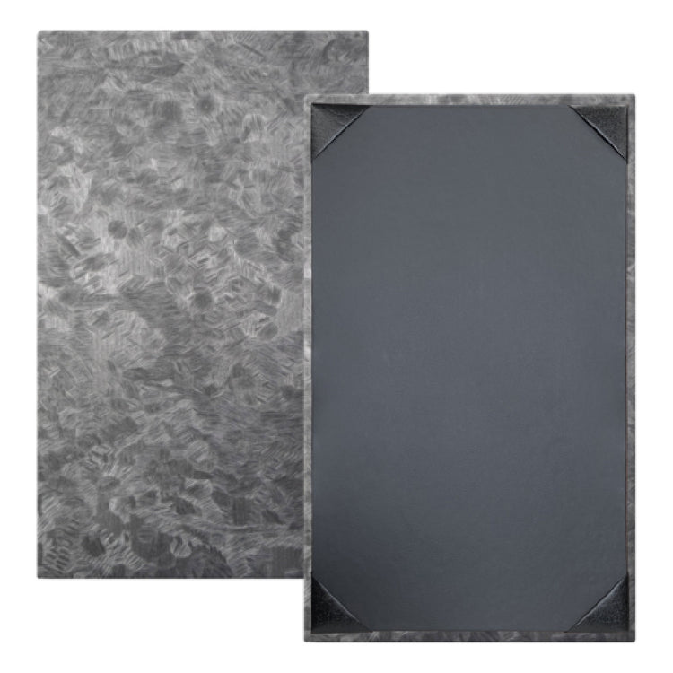 Risch, MET-1V 8.5X14, Brushed Metallic padded faux-leather Menu Cover (specify color), 8-1/2" x 14", single, 1 view, black card with black album style corner tabs to hold menu insert, Made in USA (minimum order 25 each) (Packed By: 25 Each Per Case)