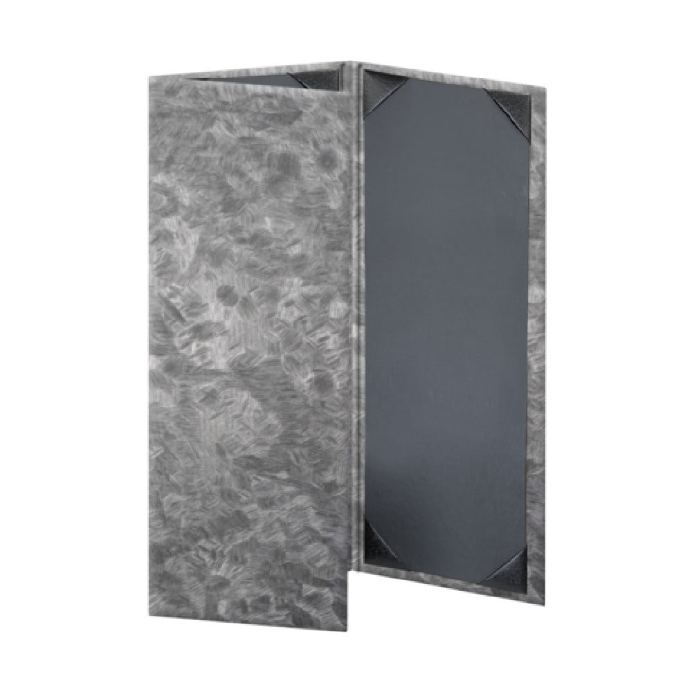 Risch, MET-3V 4.25X11, Brushed Metallic padded faux-leather Menu Cover (specify color), 4-1/4" x 11", fold-out, 3 view, black cards with black album style corner tabs to hold menu inserts, Made in USA (minimum order 25 each) (Packed By: 25 Each Per Case)