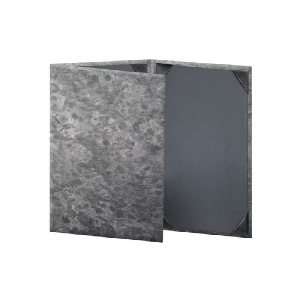 Risch, MET-3V 5.5X8.5, Brushed Metallic padded faux-leather Menu Cover (specify color), 5-1/2" x 8-1/2", fold-out, 3 view, black cards with black album style corner tabs to hold menu inserts, Made in USA (minimum order 25 each) (Packed By: 25 Each Per Case)