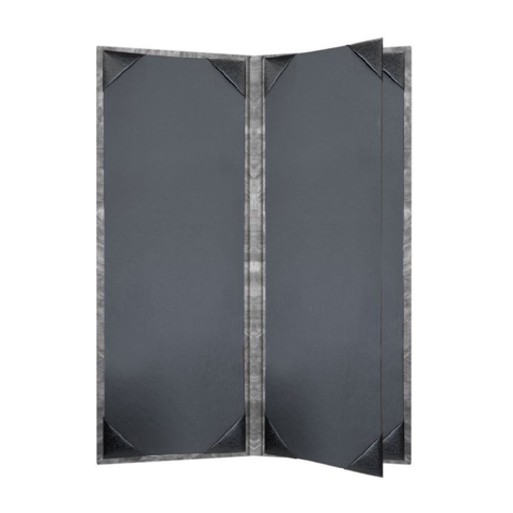 Risch, MET-4V 4.25X11, Brushed Metallic padded faux-leather Menu Cover (specify color), 4-1/4" x 11", booklet, 4 view, black cards with black album style corner tabs to hold menu inserts, Made in USA (minimum order 25 each) (Packed By: 25 Each Per Case)