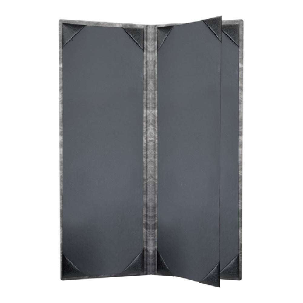 Risch, MET-4V 4.25X14, Brushed Metallic padded faux-leather Menu Cover (specify color), 4-1/4" x 14", booklet, 4 view, black cards with black album style corner tabs to hold menu inserts, Made in USA (minimum order 25 each) (Packed By: 25 Each Per Case)