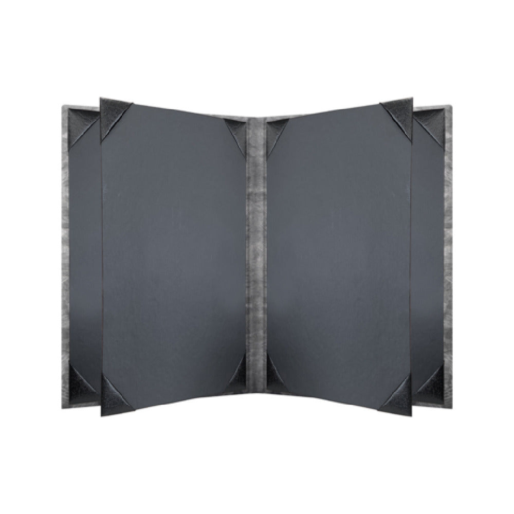 Risch, MET-6V 5.5X8.5, Brushed Metallic padded faux-leather Menu Cover (specify color), 5-1/2" x 8-1/2", booklet, 6 view, black cards with black album style corner tabs to hold menu inserts, Made in USA (minimum order 25 each) (Packed By: 25 Each Per Case)