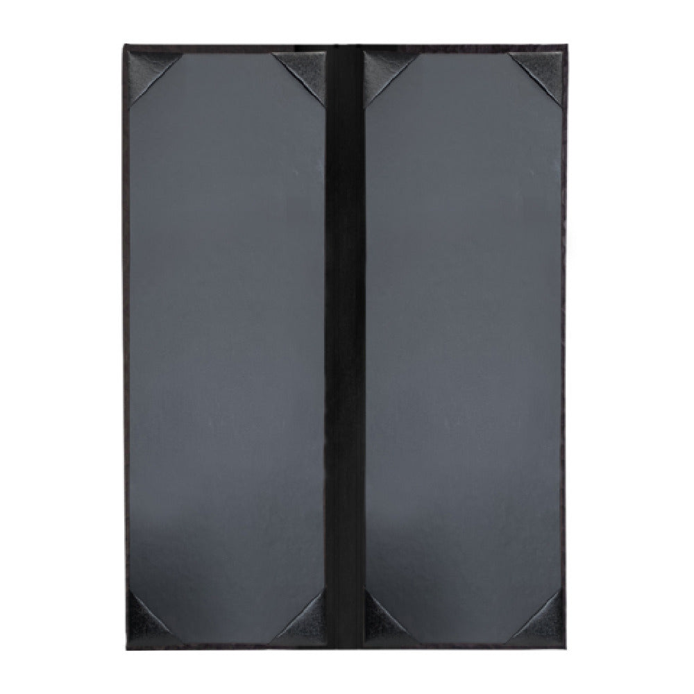 Risch, METRO-2V 4.25X14, Metro Iron or Mesh hardback metallic Menu Cover (specify pattern and color), 4-1/4" x 14", double, 2 view, black bonded leather spine, black cards with black album style corner tabs to hold menu inserts, Made in USA (minimum order 25 each) (Packed By: 25 Each Per Case)