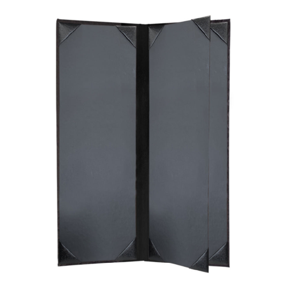 Risch, METRO-4V 4.25X14, Metro Iron or Mesh hardback metallic Menu Cover (specify pattern and color), 4-1/4" x 14", booklet, 4 view, black bonded leather spine, black cards with black album style corner tabs to hold menu inserts, Made in USA (minimum order 25 each) (Packed By: 25 Each Per Case)