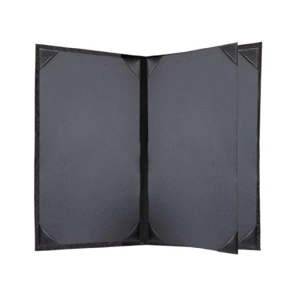 Risch, METRO-4V 8.5X14, Metro Iron or Mesh hardback metallic Menu Cover (specify pattern and color), 8-1/2" x 14", booklet, 4 view, black bonded leather spine, black cards with black album style corner tabs to hold menu inserts, Made in USA (minimum order 25 each) (Packed By: 25 Each Per Case)