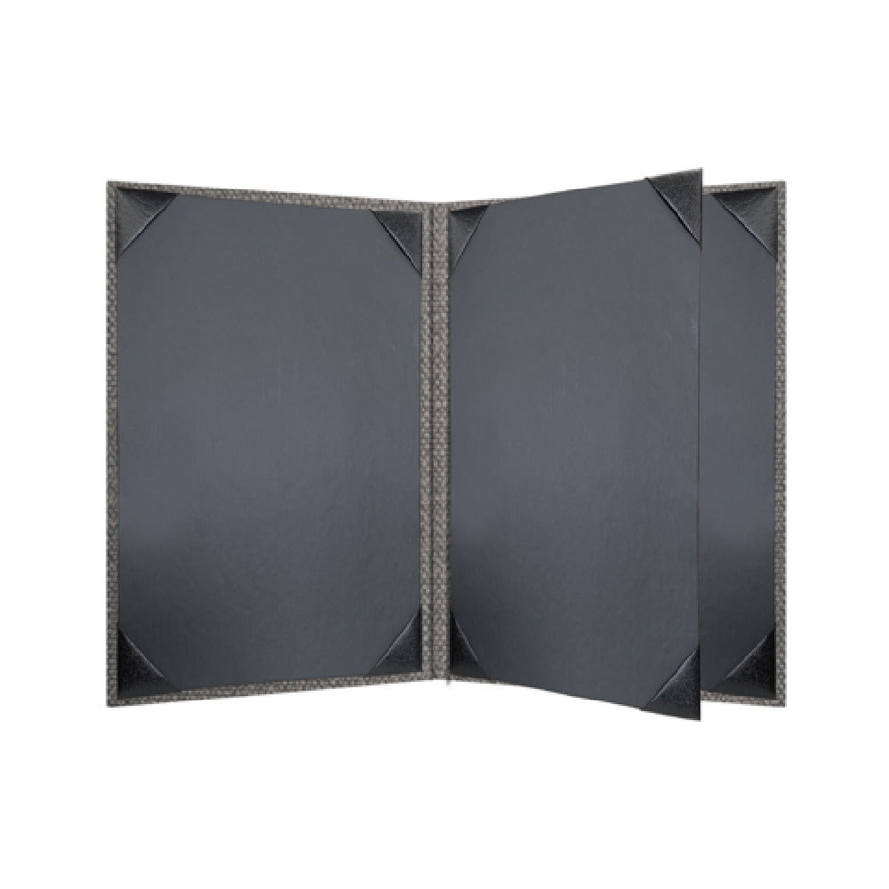 Risch, MILAN-4V 5.5X8.5, Milan hardback simulated woven vinyl Menu Cover (specify color), 5-1/2" x 8-1/2", booklet, 4 view, black cards with black album style corner tabs to hold menu inserts, Made in USA (minimum order 25 each) (Packed By: 25 Each Per Case)