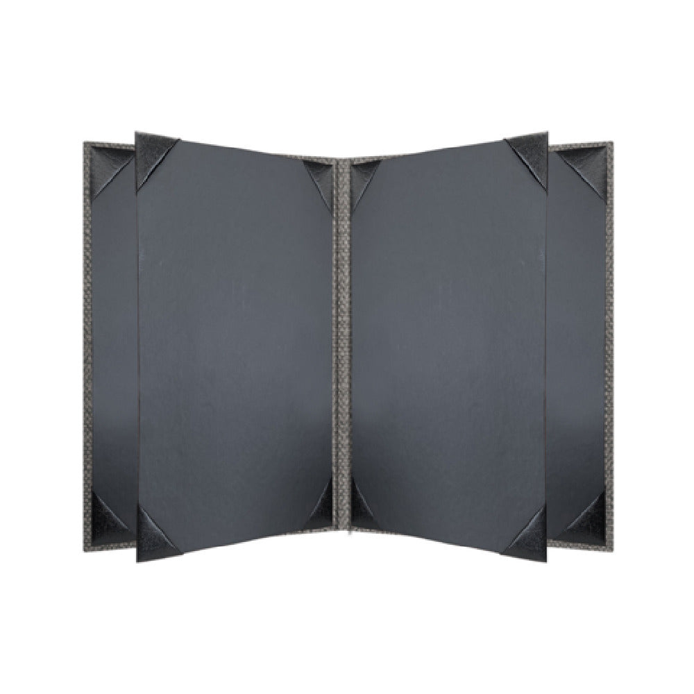 Risch, MILAN-6V 5.5X8.5, Milan hardback simulated woven vinyl Menu Cover (specify color), 5-1/2" x 8-1/2", booklet, 6 view, black cards with black album style corner tabs to hold menu inserts, Made in USA (minimum order 25 each) (Packed By: 25 Each Per Case)