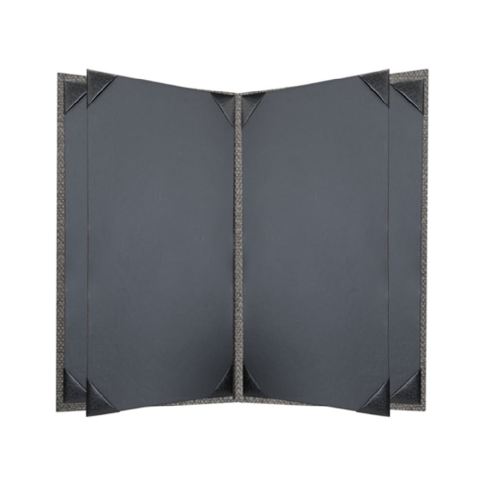 Risch, MILAN-6V 8.5X14, Milan hardback simulated woven vinyl Menu Cover (specify color), 8-1/2" x 14", booklet, 6 view, black cards with black album style corner tabs to hold menu inserts, Made in USA (minimum order 25 each) (Packed By: 25 Each Per Case)