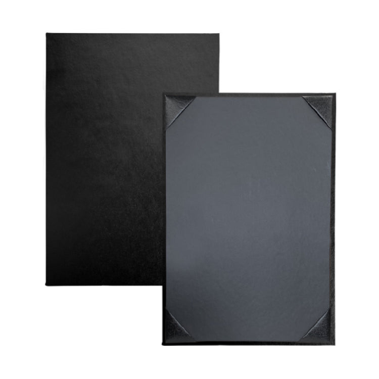 Risch, OM-1V 5.5X8.5, Oakmont padded smooth-grained faux-leather Menu Cover (specify color), 5-1/2" x 8-1/2", single, 1 view, black card with black album style corner tabs to hold menu insert, Made in USA (minimum order 25 each) (Packed By: 25 Each Per Case)