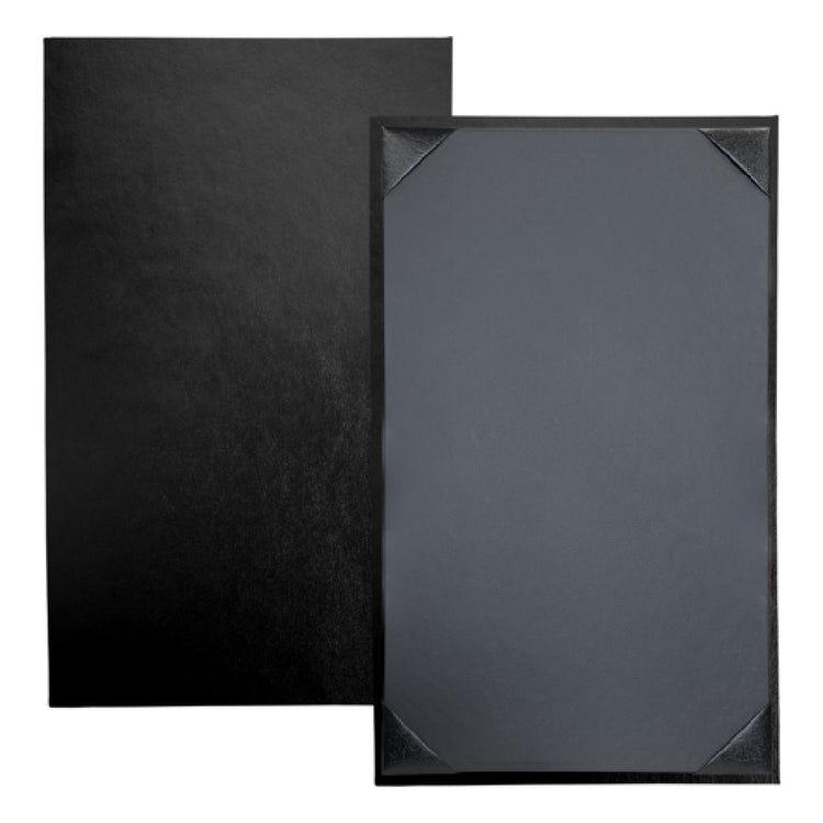 Risch, OM-1V 8.5X14, Oakmont padded smooth-grained faux-leather Menu Cover (specify color), 8-1/2" x 14", single, 1 view, black card with black album style corner tabs to hold menu insert, Made in USA (minimum order 25 each) (Packed By: 25 Each Per Case)