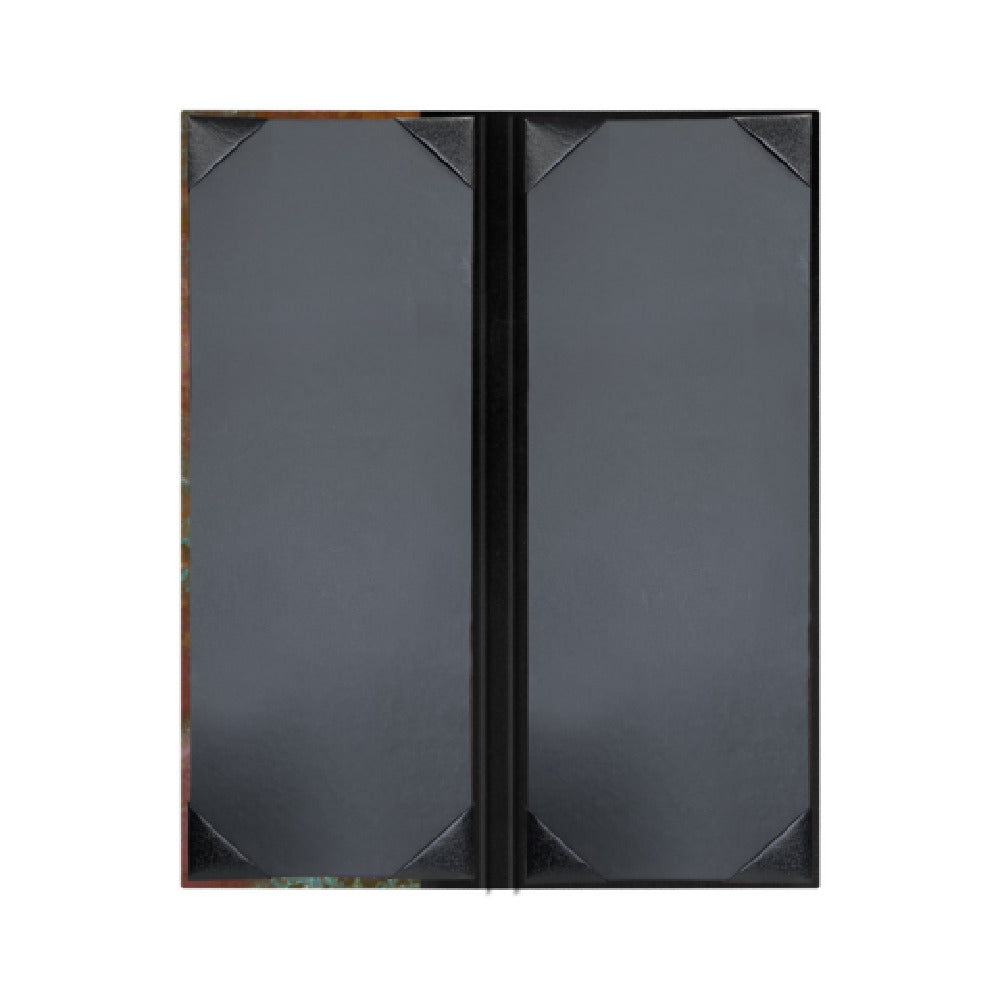 Risch, PATINA-2V 4.25X11, Patina hardback authentic copper Menu Cover (specify color), 4-1/4" x 11", double, 2 view, bonded leather spine and back (specify color), black cards with black album style corner tabs to hold menu inserts, Made in USA (minimum order 25 each) (Packed By: 25 Each Per Case)