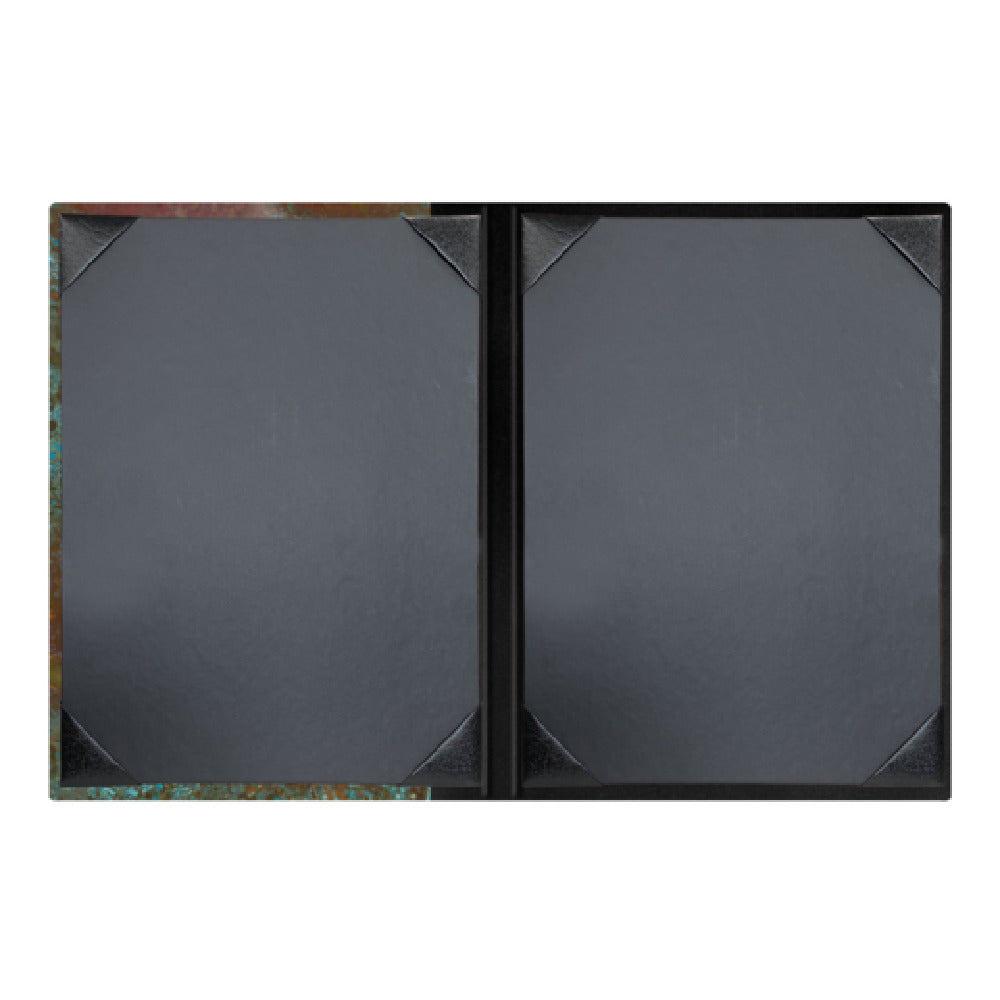 Risch, PATINA-2V 8.5X11, Patina hardback authentic copper Menu Cover (specify color), 8-1/2" x 11", double, 2 view, bonded leather spine and back (specify color), black cards with black album style corner tabs to hold menu inserts, Made in USA (minimum order 25 each) (Packed By: 25 Each Per Case)
