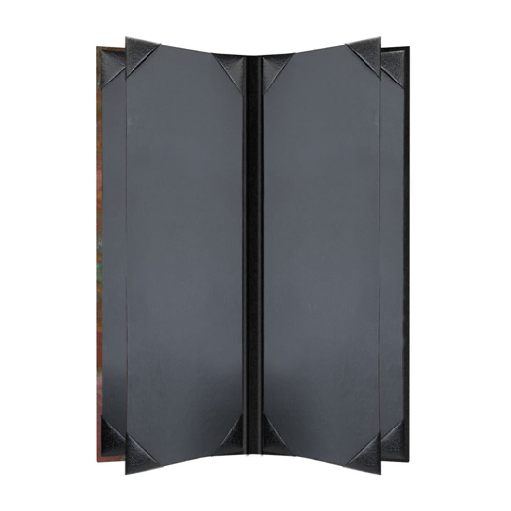 Risch, PATINA-6V 4.25X11, Patina hardback authentic copper Menu Cover (specify color), 4-1/4" x 11", booklet, (6) view, bonded leather spine and back (specify color), black cards with black album style corner tabs to hold menu inserts, Made in USA (minimum order 25 each) (Packed By: 25 Each Per Case)