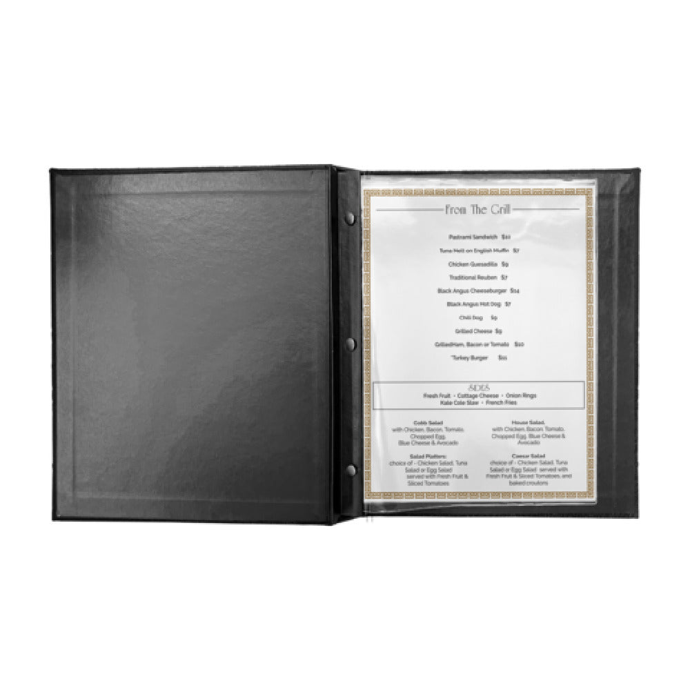 - 3 hole-punched spine with silver screw posts holds up to 12 clear vinyl page protectors (sold separately)